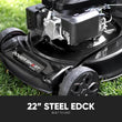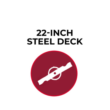 ● 22" Heavy-Duty Steel Deck: Precision-cut blade delivers superior mulching and rear-discharge with bagger